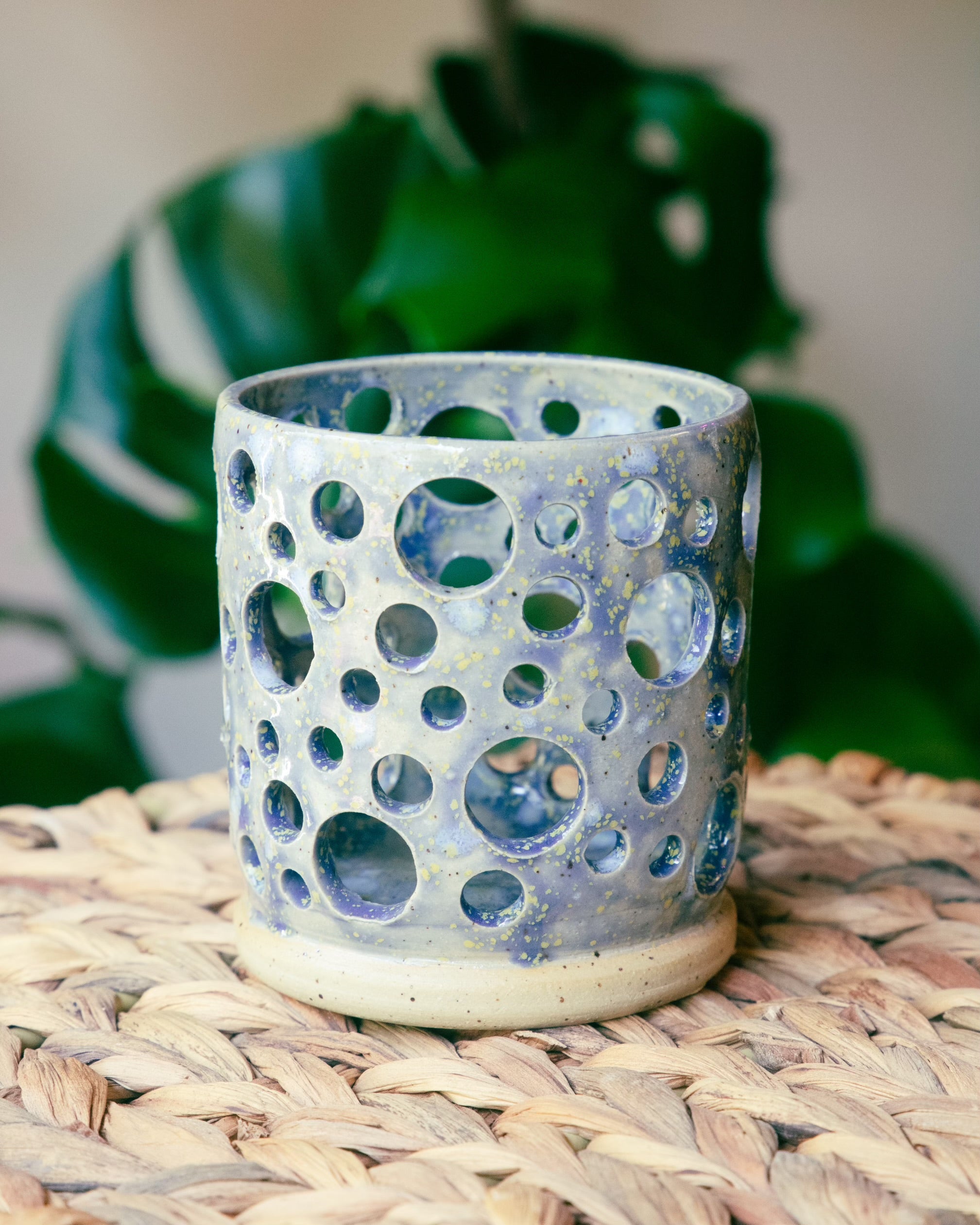 Elevate your home with this exquisite handmade pottery container, crafted with care by a talented local artist. This versatile piece is more than just a container—it's a statement of artistry and functionality. Whether you use it as a candle holder, orchid pot, catch-all bowl, a vase, a planter, or anything your heart desires, this pottery container seamlessly blends form and function.