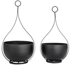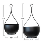 These black hanging metal planters are stunning and functional pieces that can enhance any space. The round shape with a black finish gives them a smooth and sophisticated look. These planters showcase plants, flowers, or herbs, adding drama and greenery to any space. Made of durable metal, they are easy to clean and maintain. Both planters can hold an 8 inch pot, making them suitable for indoor or outdoor display. The black finish on the planters gives them a modern and sleek look that complements any décor. The round shape is versatile, accommodating a variety of plants, from small succulents to large ferns. The durable metal ensures their longevity, and they can be easily cleaned and maintained by wiping them down with a damp cloth. This set of two black hanging metal planters is the perfect solution for adding elegance and sophistication to any space, making them a conversation starter.