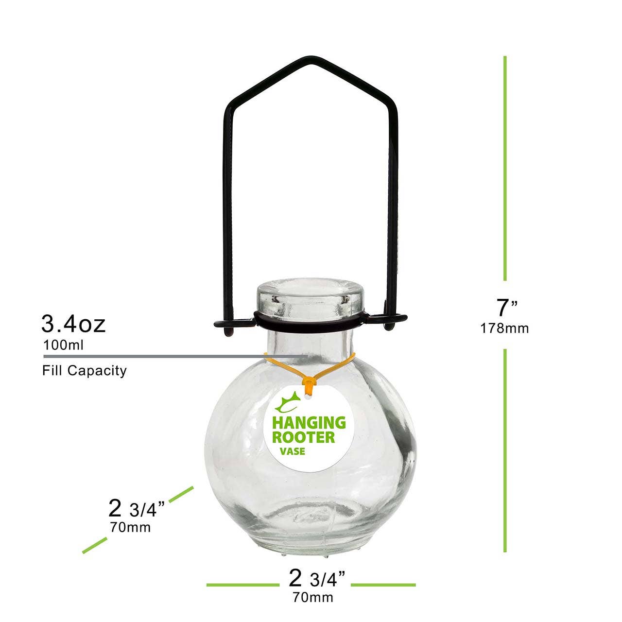 The Hanging Small Ball Rooter Vase is a stylish and eco-friendly choice for plant lovers, crafted from recycled glass and sturdy metal. This elegant round glass propagation vase is perfect for growing plants through hydroponic rooting, making it an ideal hanging glass vase for displaying cuttings, flowers, or small water plants. Its unique spherical shape allows you to observe the beauty of roots developing, adding a touch of nature indoors. This decorative rooting vase doubles as a water plant holder, effortlessly enhancing any home decor, office space, or special event with its sustainable charm.