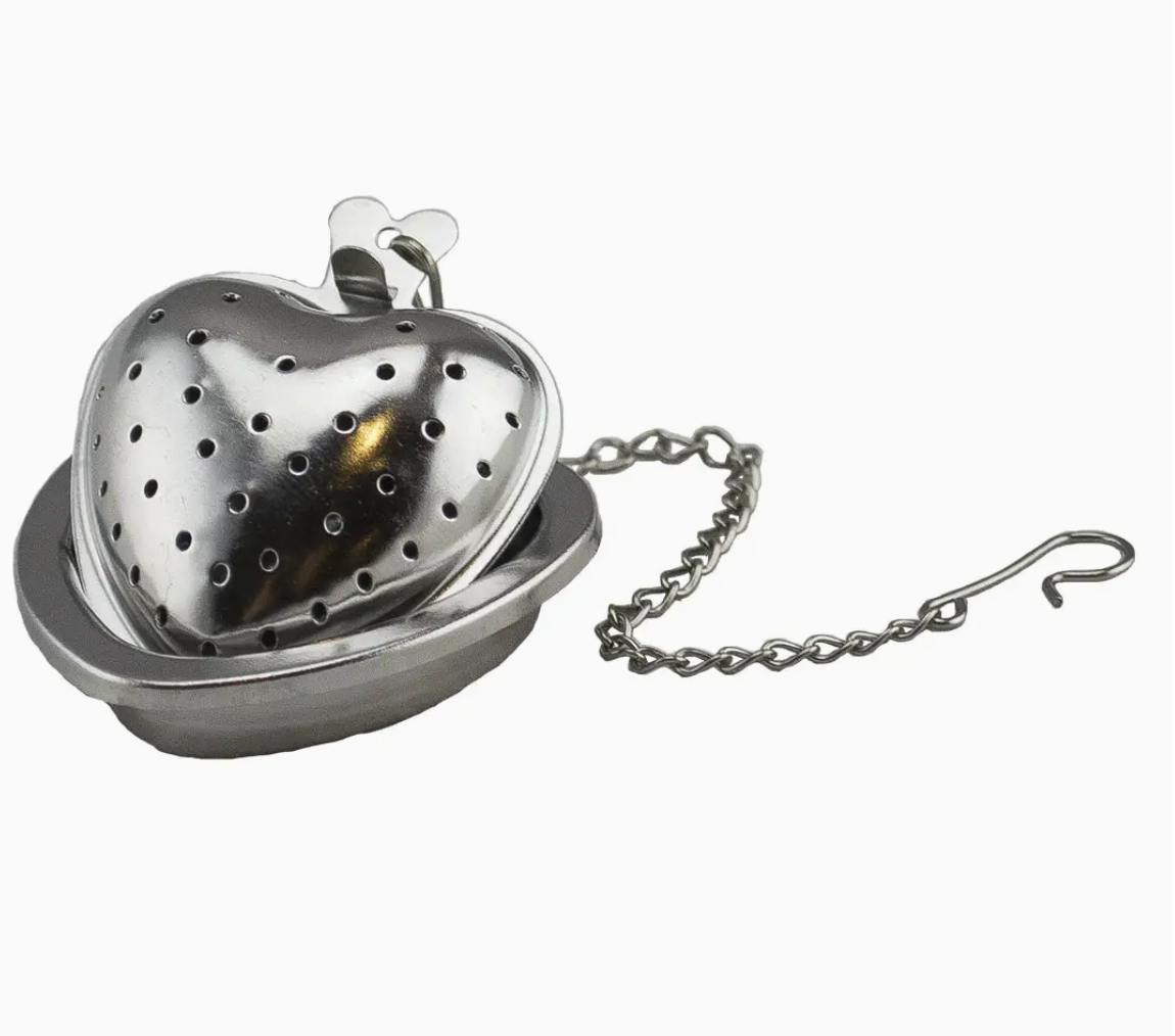 The person with champagne tastes prefers loose tea instead of tea bags. For that person, this stainless steel strainer is the perfect choice with its heart shape and rich gold finish. The unique design will hold the sides shut until you squeeze the handle to open it.