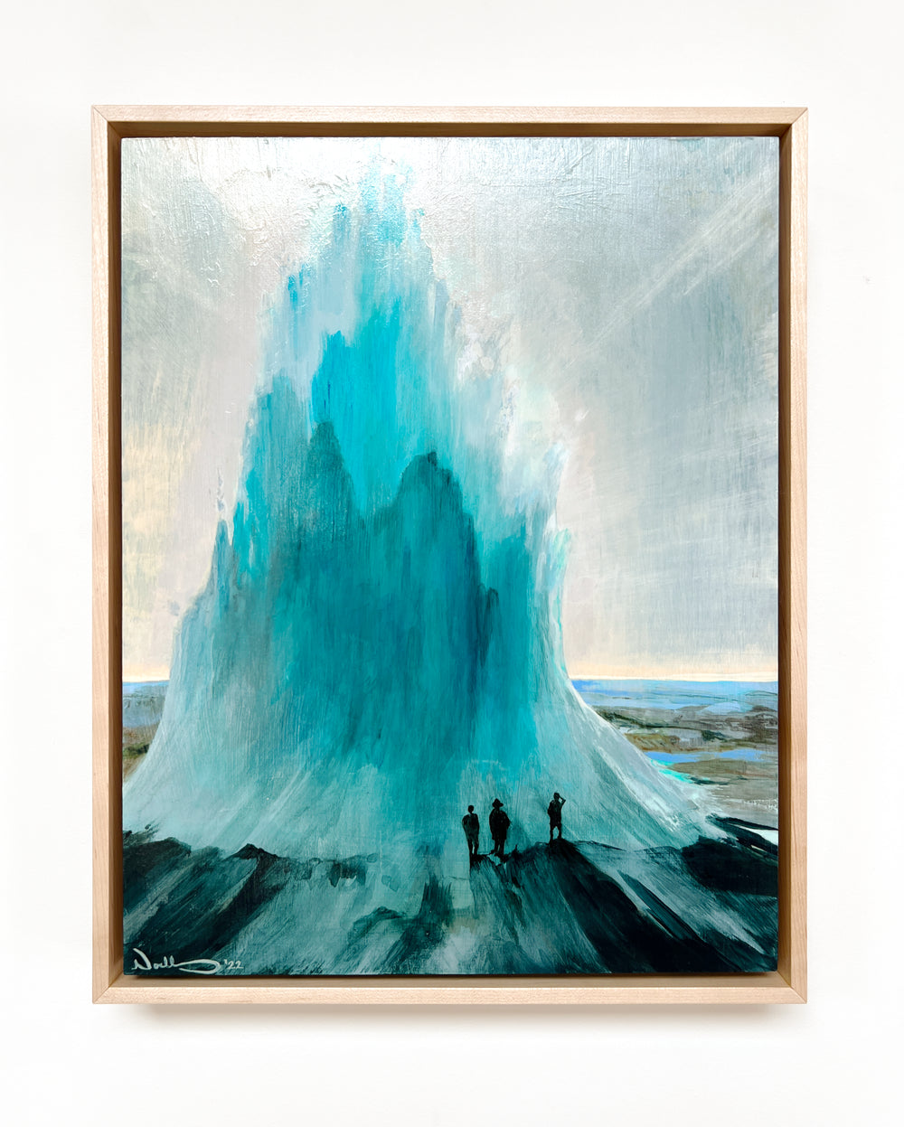 I don’t know if geysers ever do actually freeze; perhaps in extremely rare circumstances where the vented hot waters meet bitterly cold temperatures. Nonetheless, this painting was an exploration of the hypothetical phenomenon and the icy protrusion that could build up in its wake. Like frozen waterfalls, I imagine an ice geyser to be a marvelous sight.