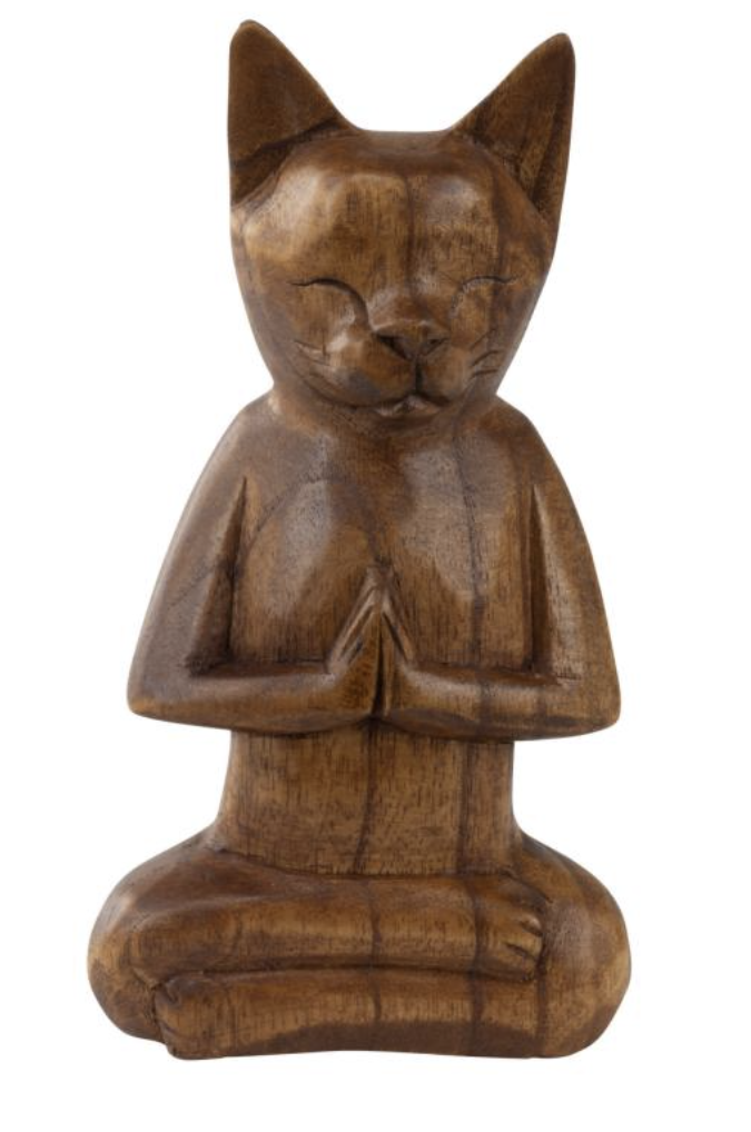 Relax and let your heart purr. This statue of hand-carved wood is a touch of humor and lightheartedness with its depiction of a happily meditating feline. Made by master craftsmen, these statues are created carefully to depict serene facial expressions and proportional details. Perfect for office or home.
