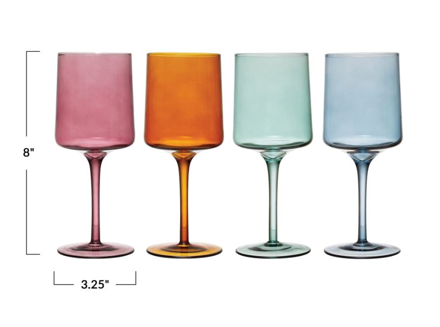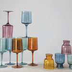 These mid-century wine glasses with ombre tones and geometric shape are a unique way to serve up your favorite glass of red, white or rose. Available in 5 colors of grey, amber, blush, olive and iridescent, these stemmed wine glasses are a chic and elegant addition to your bar cart or wine bar.