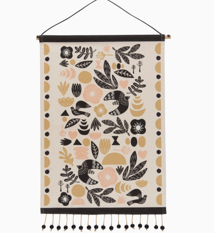 Birds fly every which way, finding their own paths amidst a plethora of plants, in Danica Studio's striking Myth Wall Art, showcasing symbolic storytelling at its best. Our latest collection of wall art dials up the distinctive charm of your home or workplace, inspiring an ambiance of heartfelt connection and creativity. Made from pure cotton and suspended on a pine wood dowel, these charming wall hangings feature quirky, memorable motifs in durable polyester embroidery.