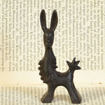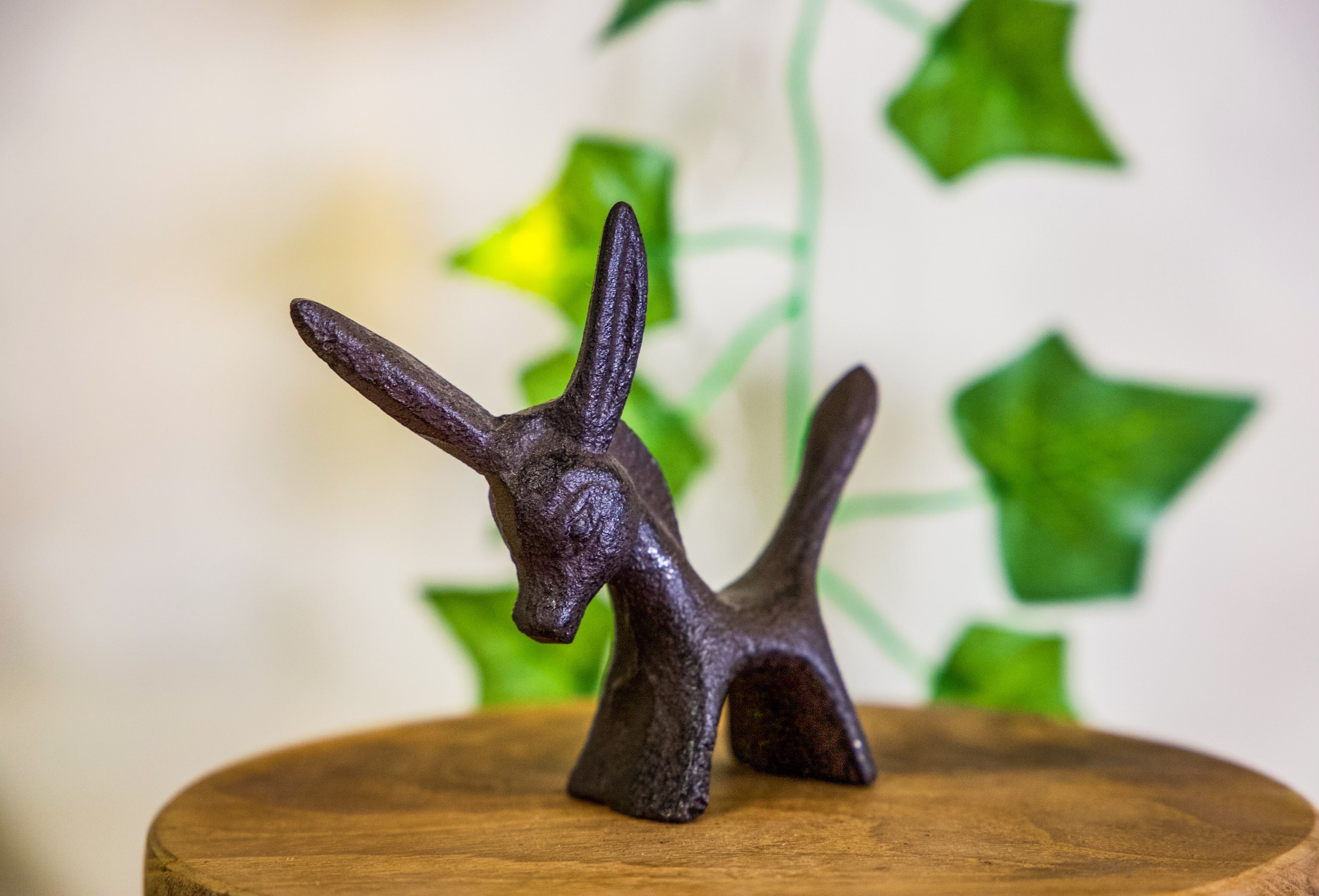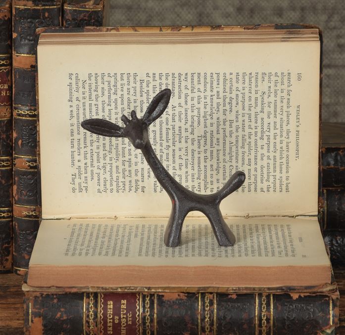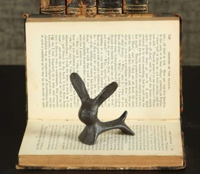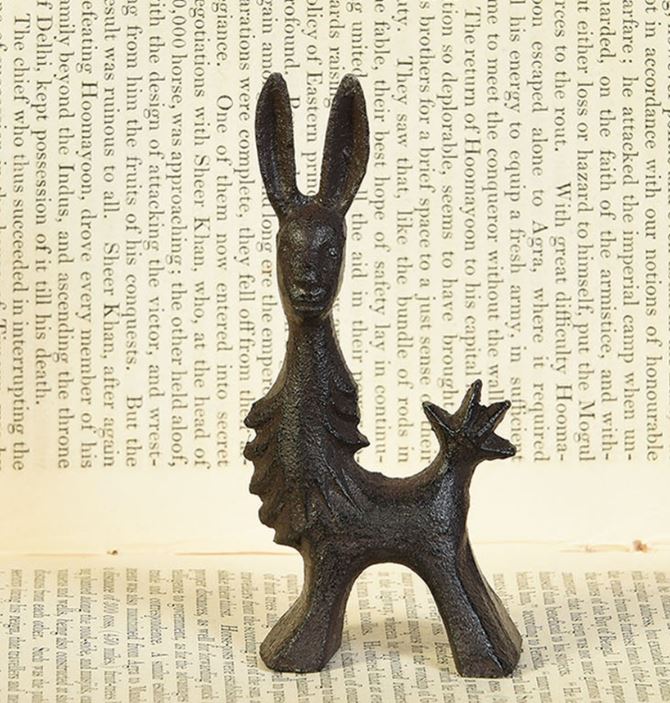 Curiously abstract yet delightfully adorable animal figures are cast of iron to add a touch of sculptural whimsy to any stack of papers, desktop or place setting.