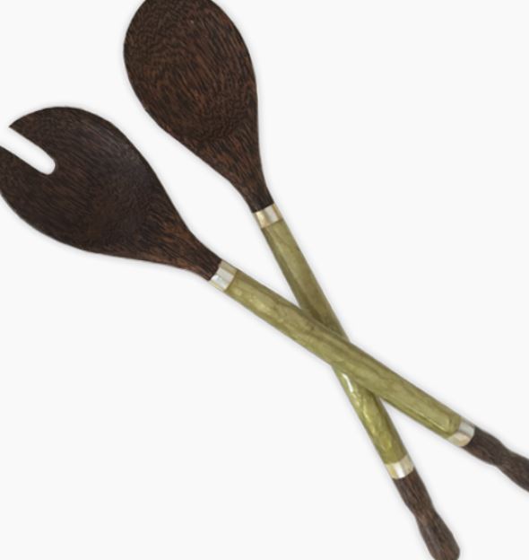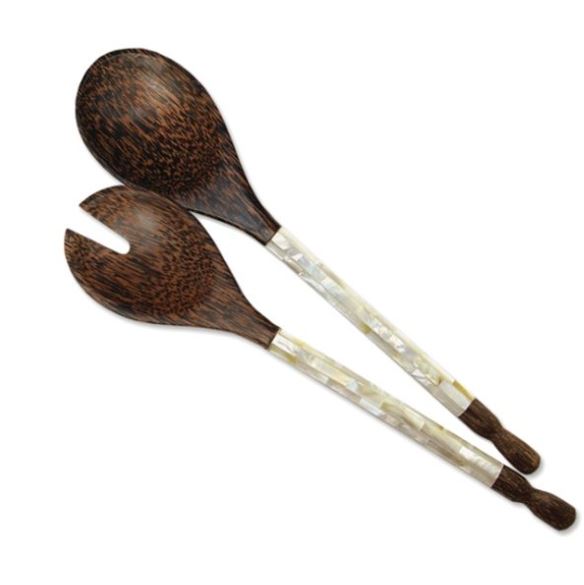 Capiz & Palm Wood Capiz Salad Servers - 5 Colors