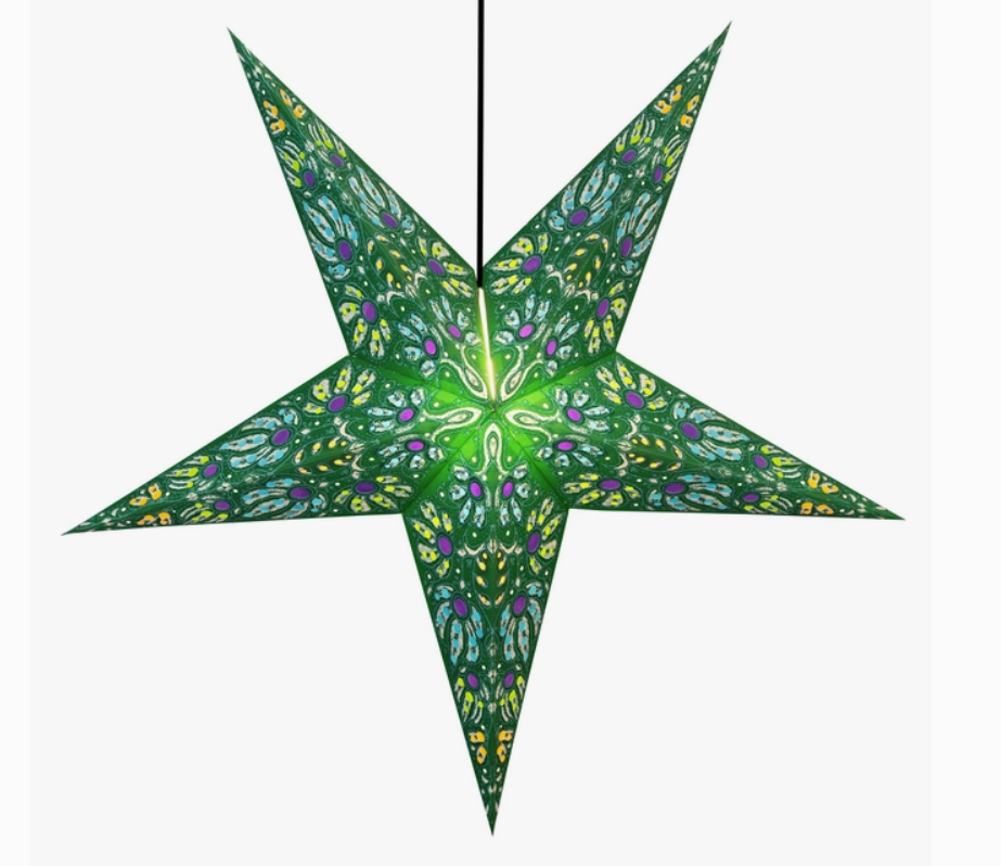 Our StarLights are handcrafted in India by partners of the Om Gallery. They are available in many dazzling patterns. Made with 100% recycled materials, these hanging lanterns create ambiance and a clever accent lighting. "Create Your Om"!