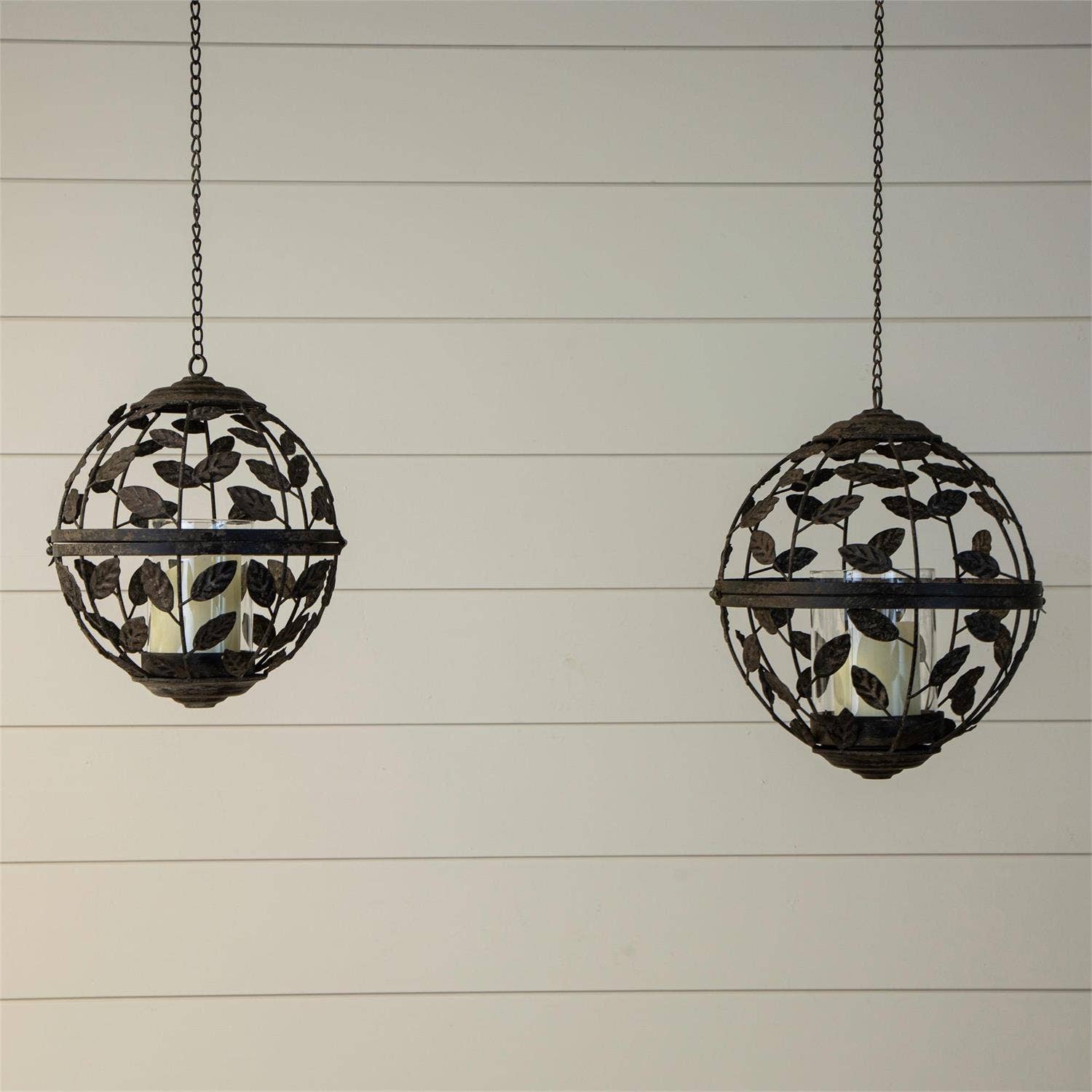 Metal, Glass | Chain 22 Inches, 23 Inches | Candles Not Included 13" H x 11" Dia, 12" H x 9.5" Dia Hold 3" Dia Candle.
