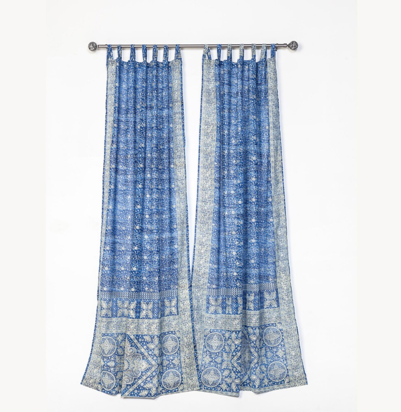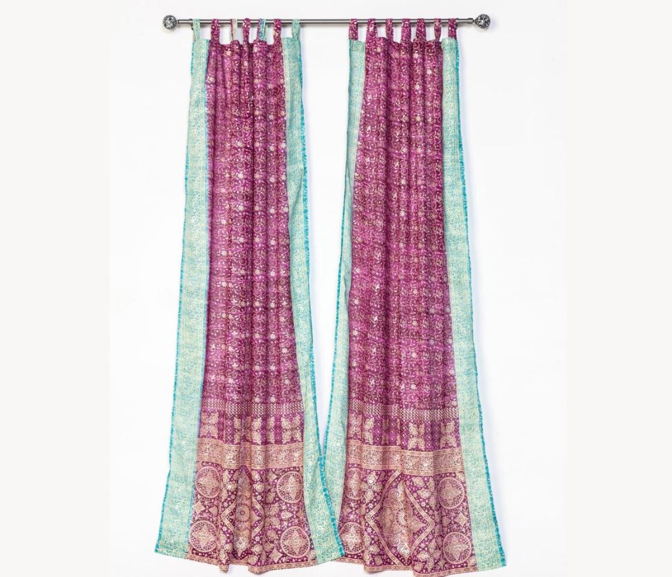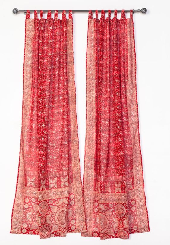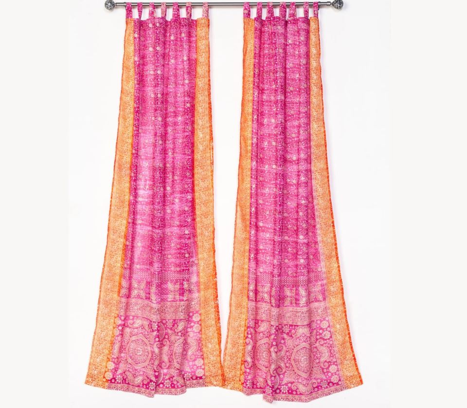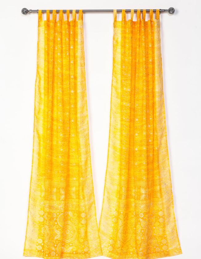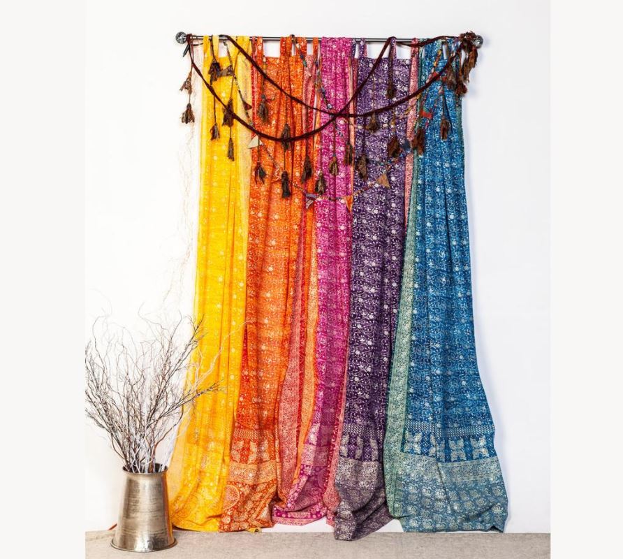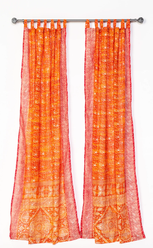 Padmini’s vibrant color palette and signature line of 'Maharani' (queen) Sari Curtain come in beautiful color variations. They inject warm and rich color to your space and make a bold statement. It is semi sheer high quality Georgette fabric that filters and enhances natural light with its gorgeous hue. Each one is hand-painted to add that special dazzle and glitter. If you’ve been looking for amazing window treatments, here you have found a vast selection of bright colors, dazzling and light material that will look great all year round.