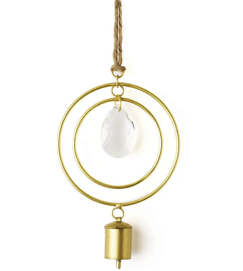 Catch the beautiful hues of sun rays through windows or on a patio or balcony with our Surya Two Circle Crystal Suncatcher Wind Chime. Surya means sun in Hindi. Display in a home window, on a patio, balcony or tree in the yard or make it a gift to someone who would appreciate good design and some sunshine in their life!