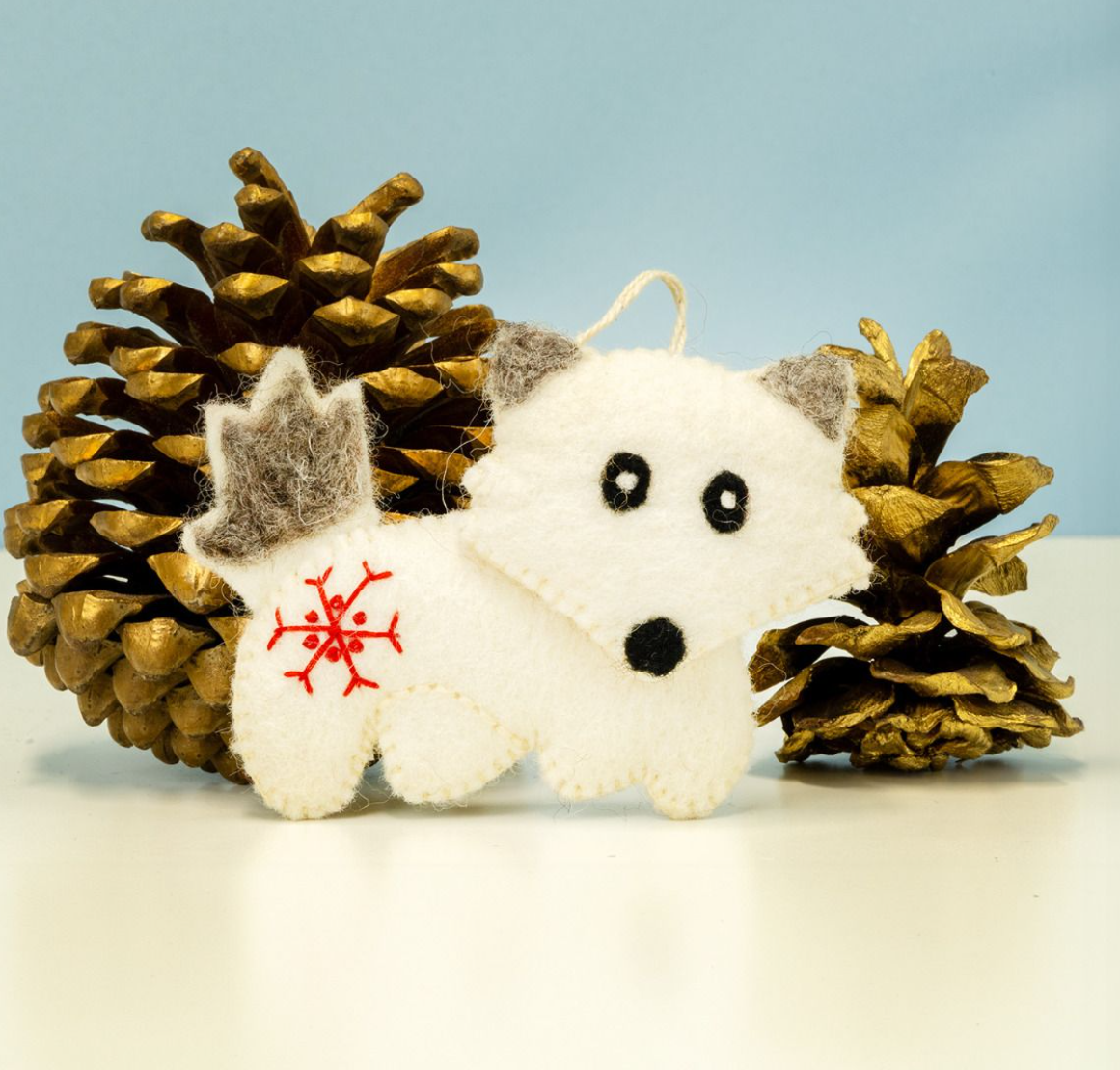 Sporting our signature hand-stitched snowflake, these little ornaments will delight your family. Charming details and high quality fair trade handwork make this ornament extra special. A festive 'Fair Trade Holiday' tag hangs from a 3-inch hanging loop. Includes a Fair Trade Holiday tag. Made exclusively for dZi Handmade, member Fair Trade Federation.