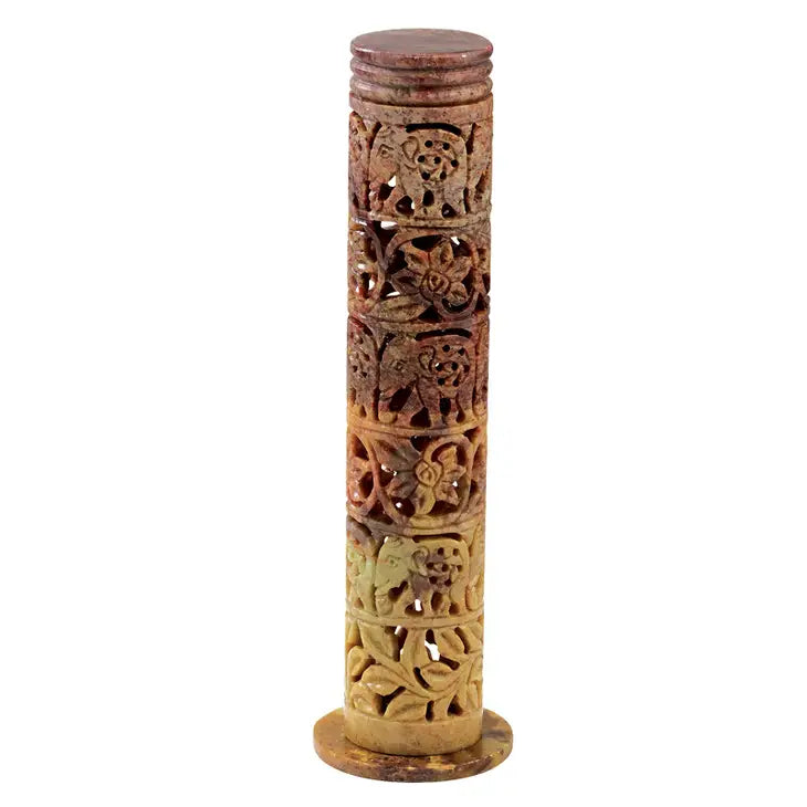 Elevate your home's ambiance with the handmade Elephant Soapstone Stick Holder. At 11" tall, this incense holder seamlessly blends functionality with aesthetic appeal. It's an ideal addition to your home fragrance collection. Designed with a commitment to fair trade and ethical sourcing, this piece reflects our brand's mission to connect global artisans with consumers. Each product, whether American-made or imported from exotic places like Nepal, Indonesia, and India, is selected for its unique beauty and meaningfulness. The Soapstone Stick Holder is more than just a home accessory, it's a testament to our commitment to promoting local artisans and global craftsmanship.
