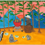 A sunset cookout with friends. This print features wildlife local to Southern California and supports Pasadena Humane Society.