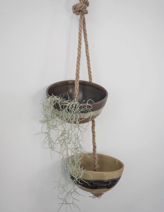 These hanging pots are a beautiful way to display faux or real florals. Made out of stoneware, these hanging pots come in 2 colors with a reactive glaze finish. These pots are easy to hang, and display any florals or stems in a beautiful and unique way