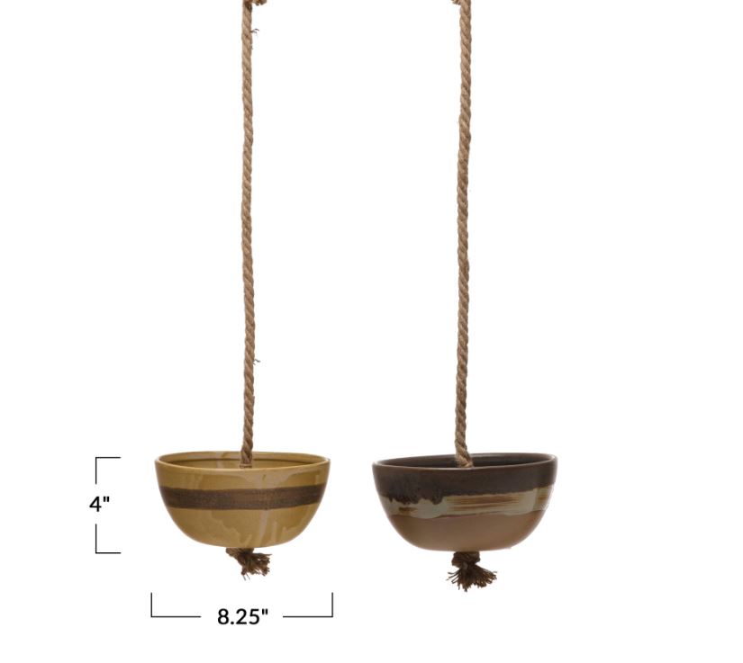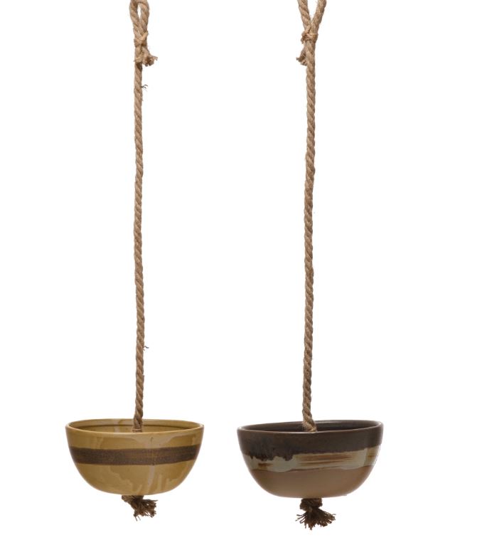 Stoneware Bowls with Jute Hanger - 2 Colors