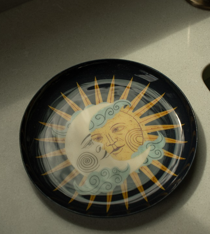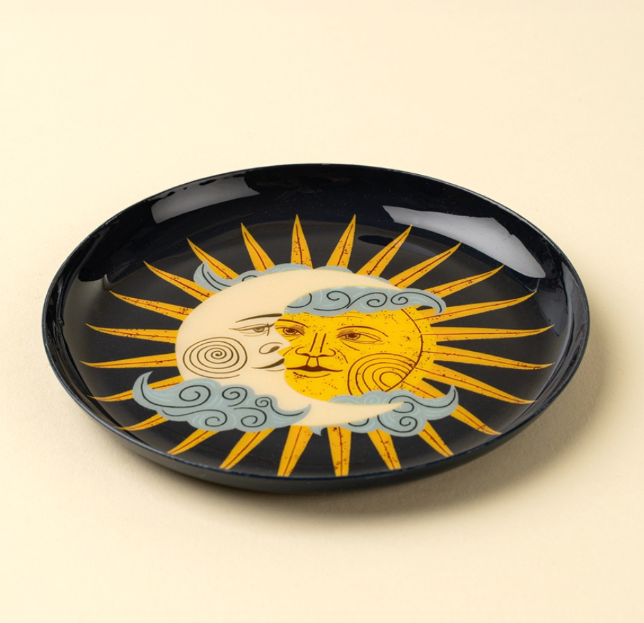 Sun and Moon Enameled Tray, A Whimsical Accent for Every Surface