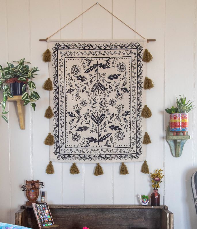 Your walls should speak your style, and we have just the thing. Our Tassel Tapestry is ready to hang and ready to transform any space in your home! It’s perfect alone or combined with more Natural Life art for a full boho gallery wall. From the intricate design to the fun tassels, it is sure to be a unique statement piece that everyone will notice when they come over! It even comes on a wooden dowel rod with twine for easy hanging.