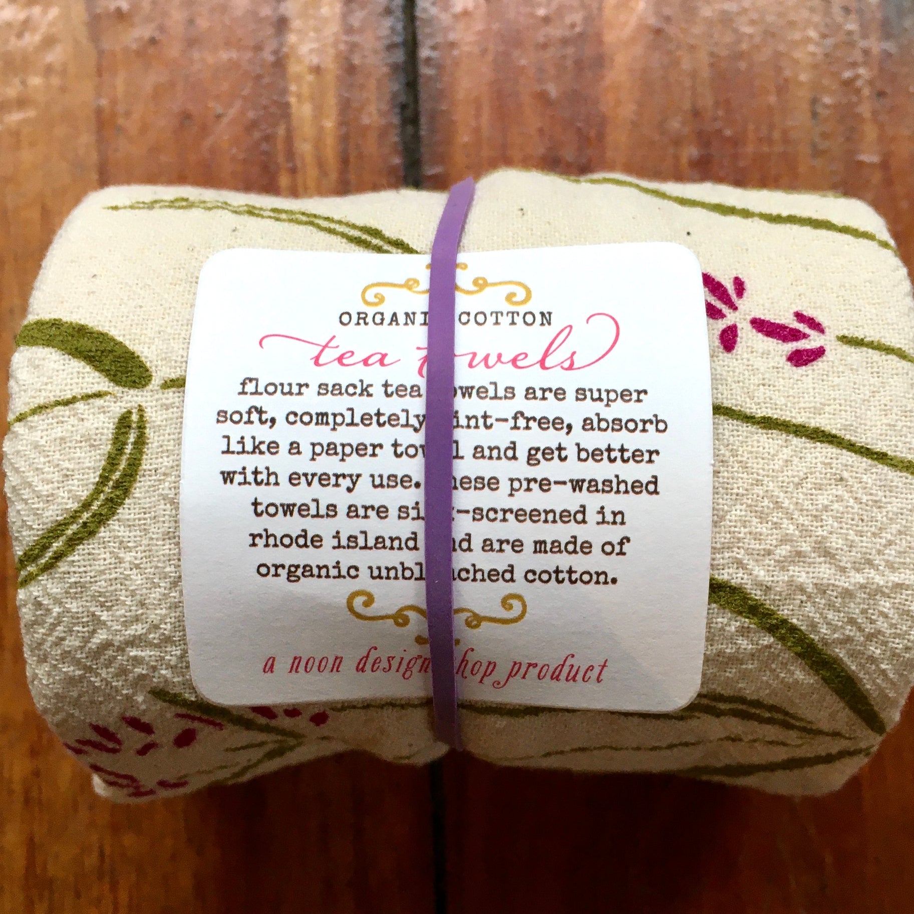 Made in America, machine washable, 28" x 29". Flour sack tea towels are super soft, completely lint-free, absorb like a paper towel, and get better with every use. These pre washed towels are silk screened in providence, and are made from unbleached, organic cotton from the mid-west.