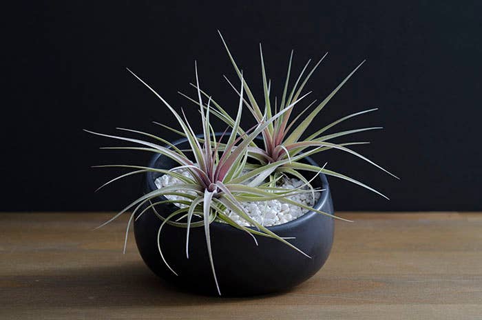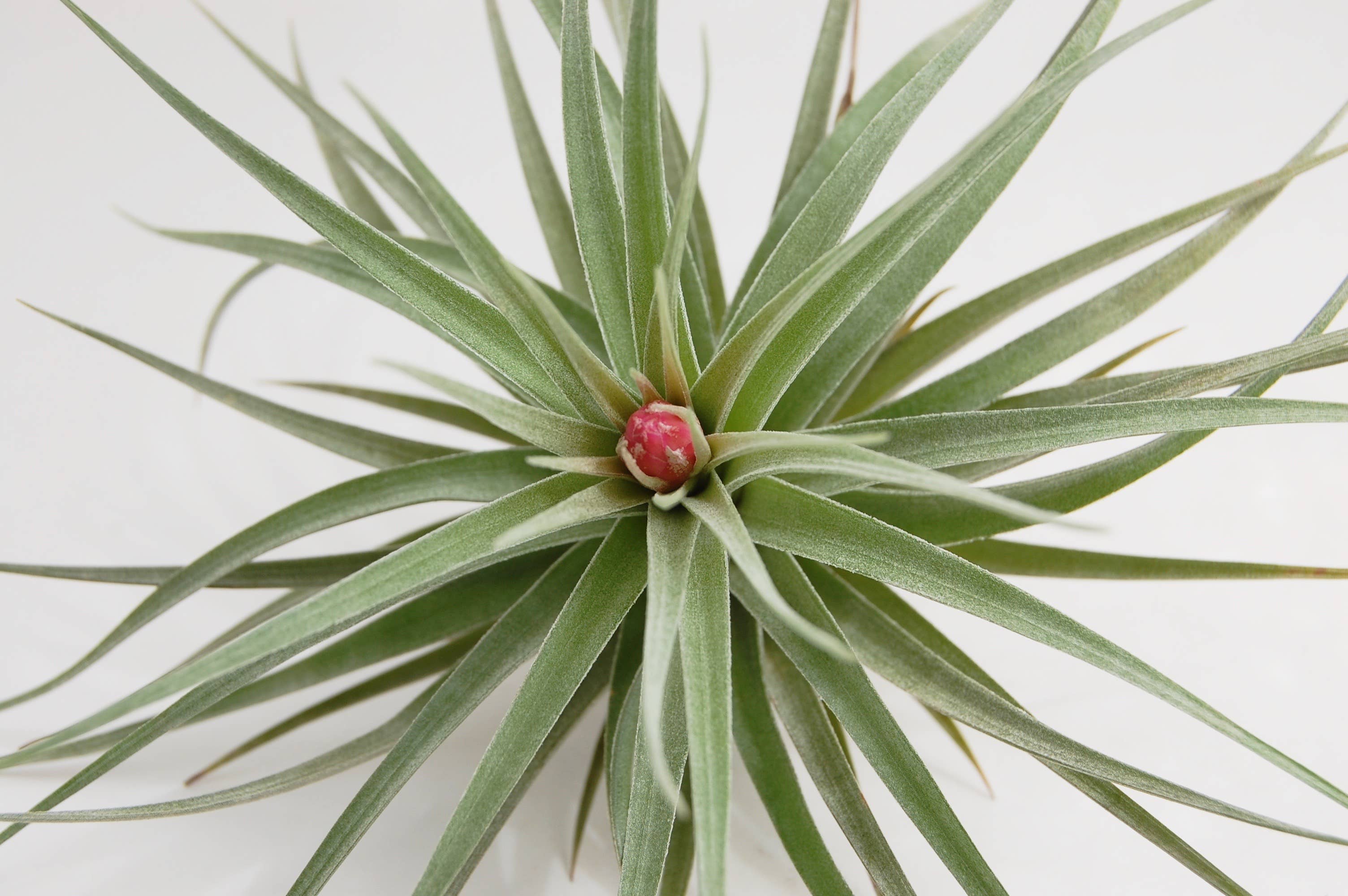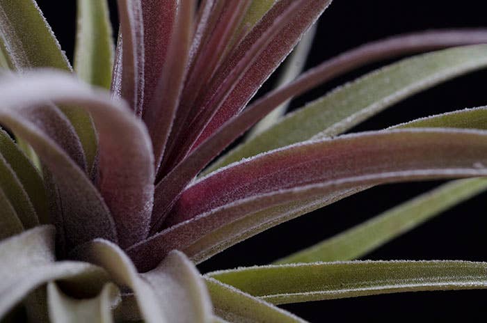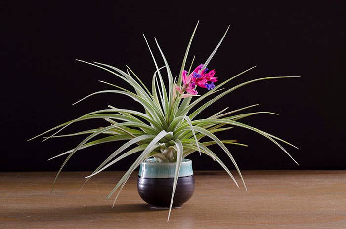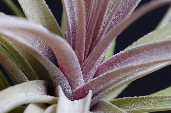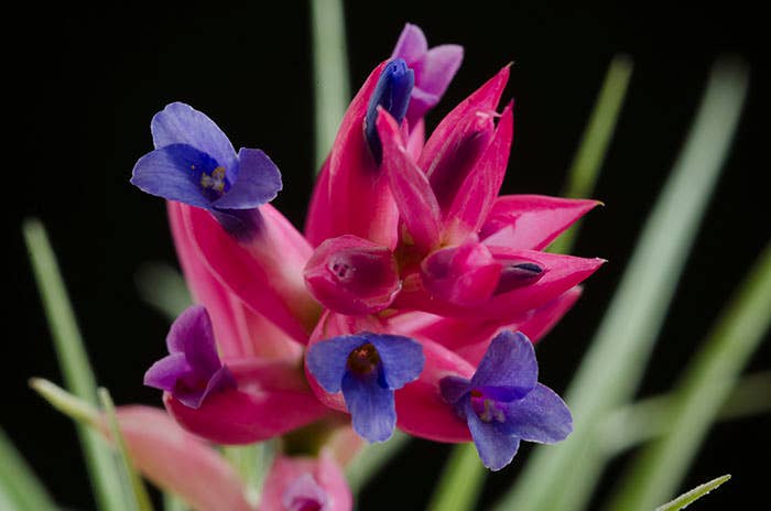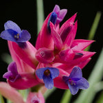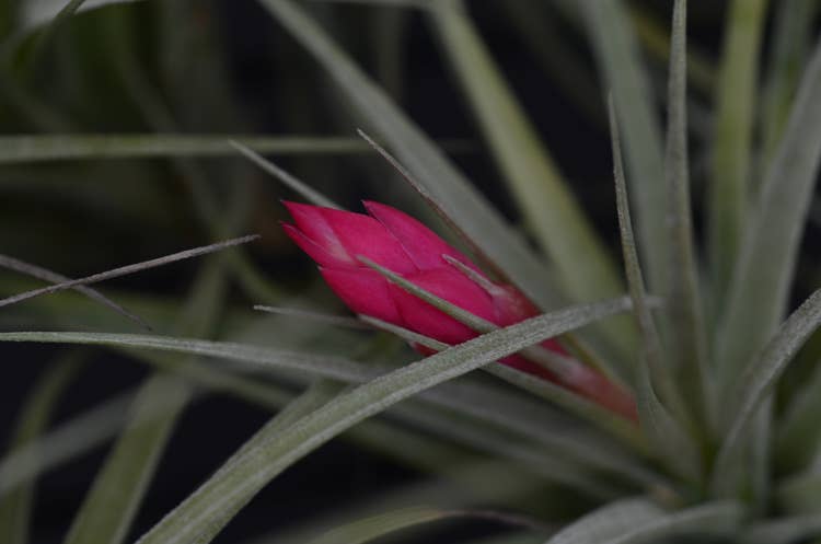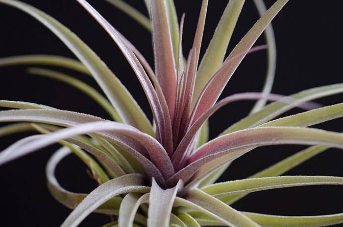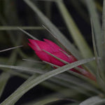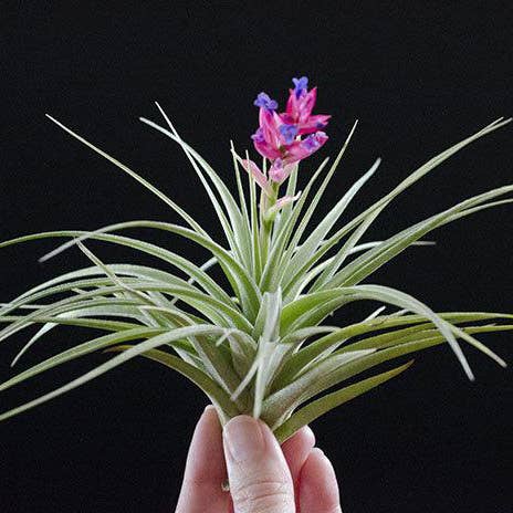 There are several forms of Tillandsia Stricta. This listing is for Aeranthos Stricta. It is popular for its hardy, medium green, thick foliage. When grown in bright light it can produce a purple blush on the top leaves of the plant. When blooming it produces a dark pink and purple bloom.