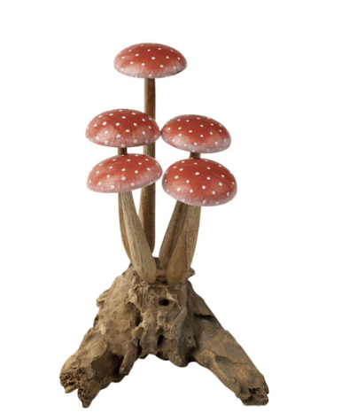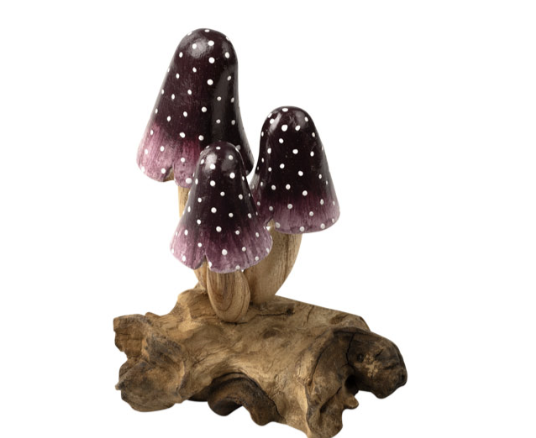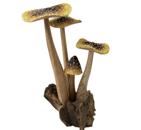 Hand carved wood mushrooms from Indonesia. Beautifully crafted and painted.