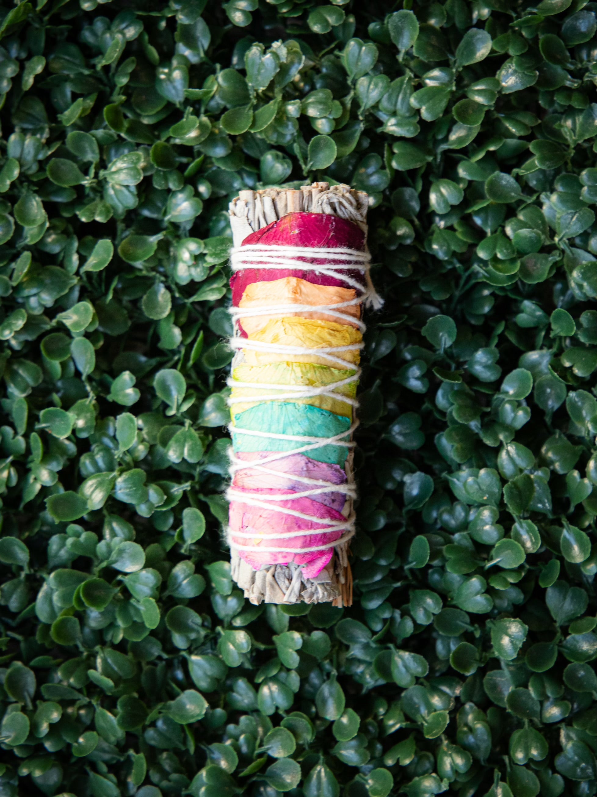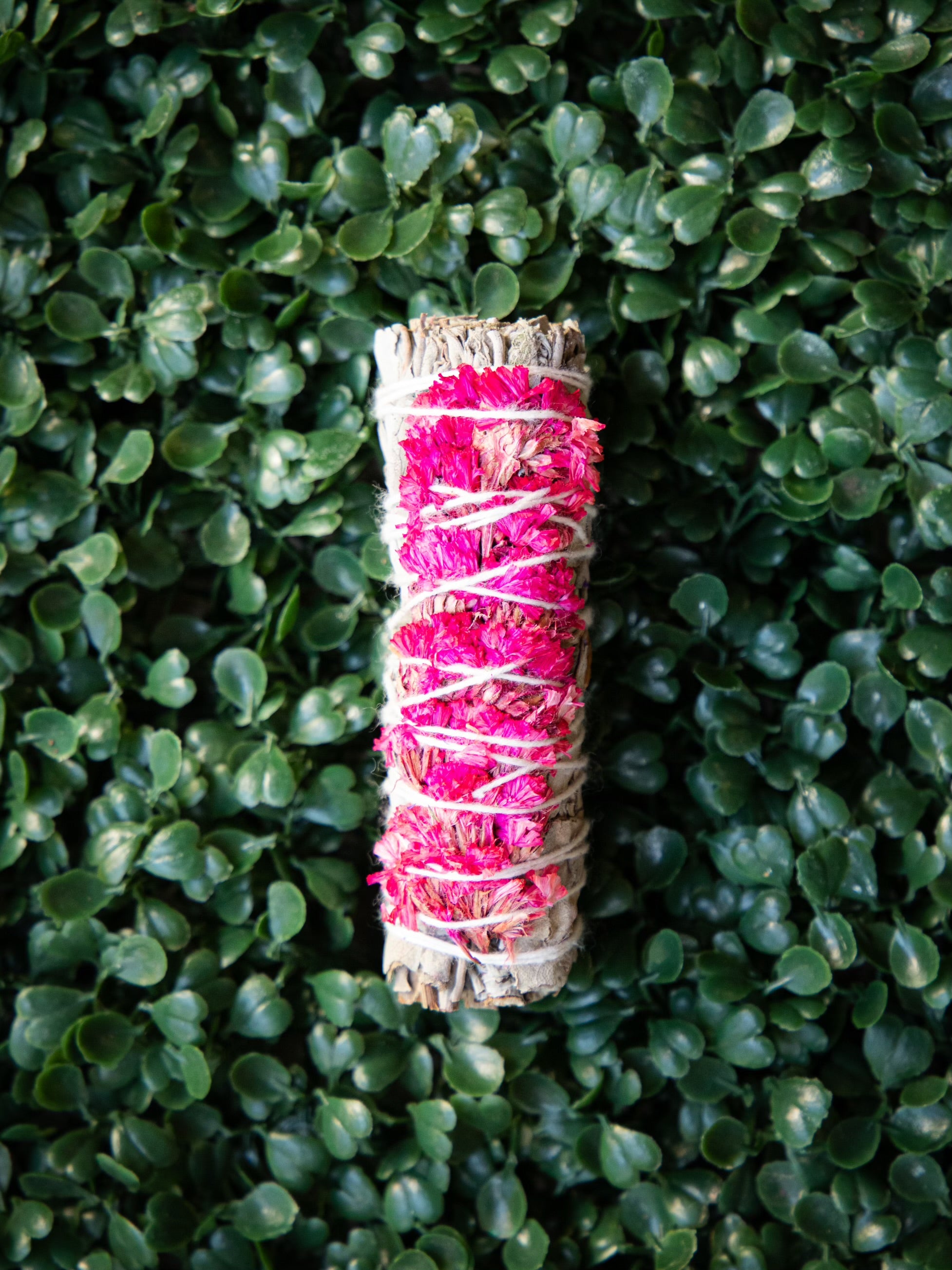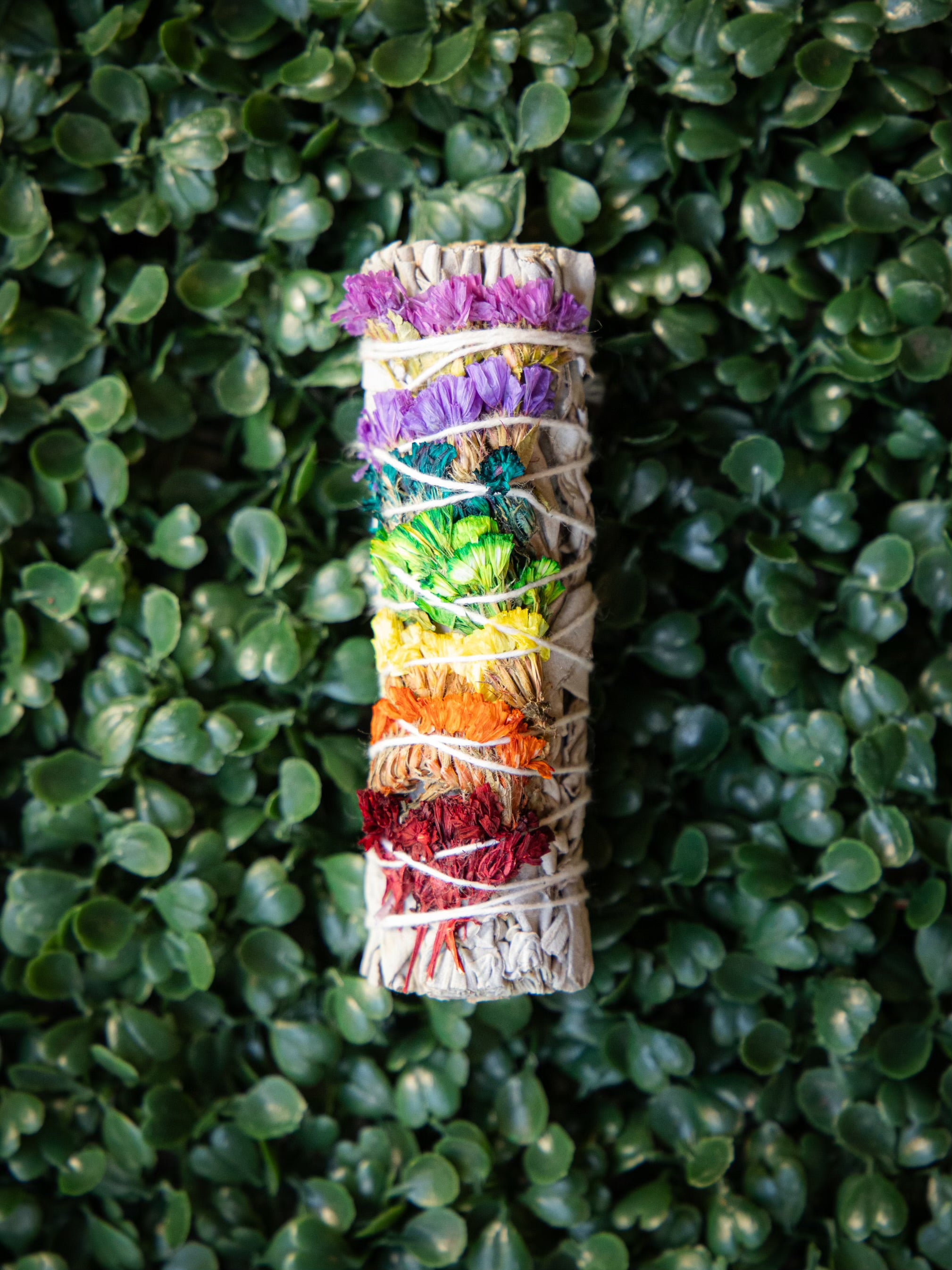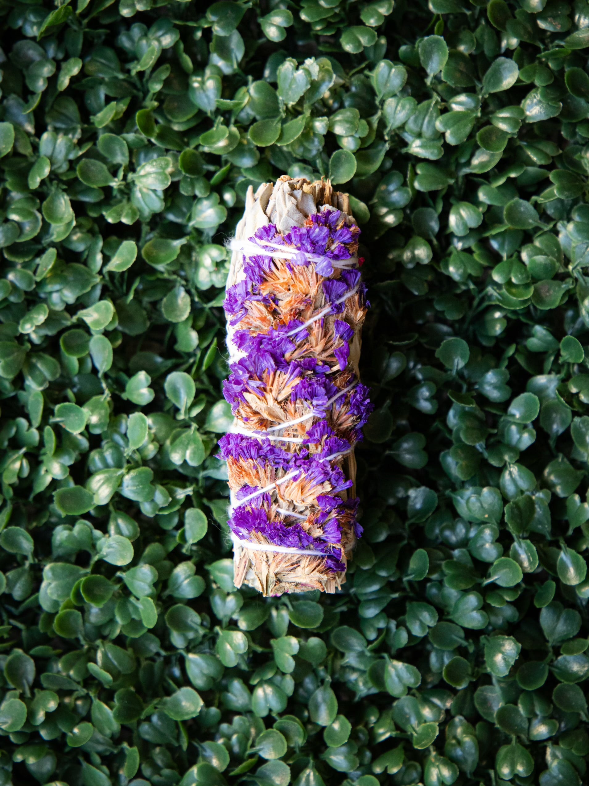 4 inch bundle of our farm white sage with dried flowers for an amazing aroma! Great for cleansing and clearing the chakras ! Excellent for protection, purification, and cleansing. Excellent for cleaning and protecting a new home, car, or sacred space/altar. Use to cleanse your existing house, car, or business every time you feel there is negative energy present.